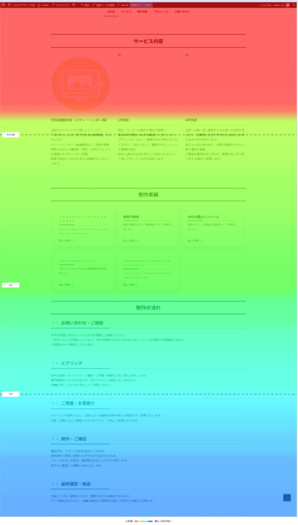 ユーザーのスクロールやクリックといった行動を、色の変化によって可視化する分析手法です。