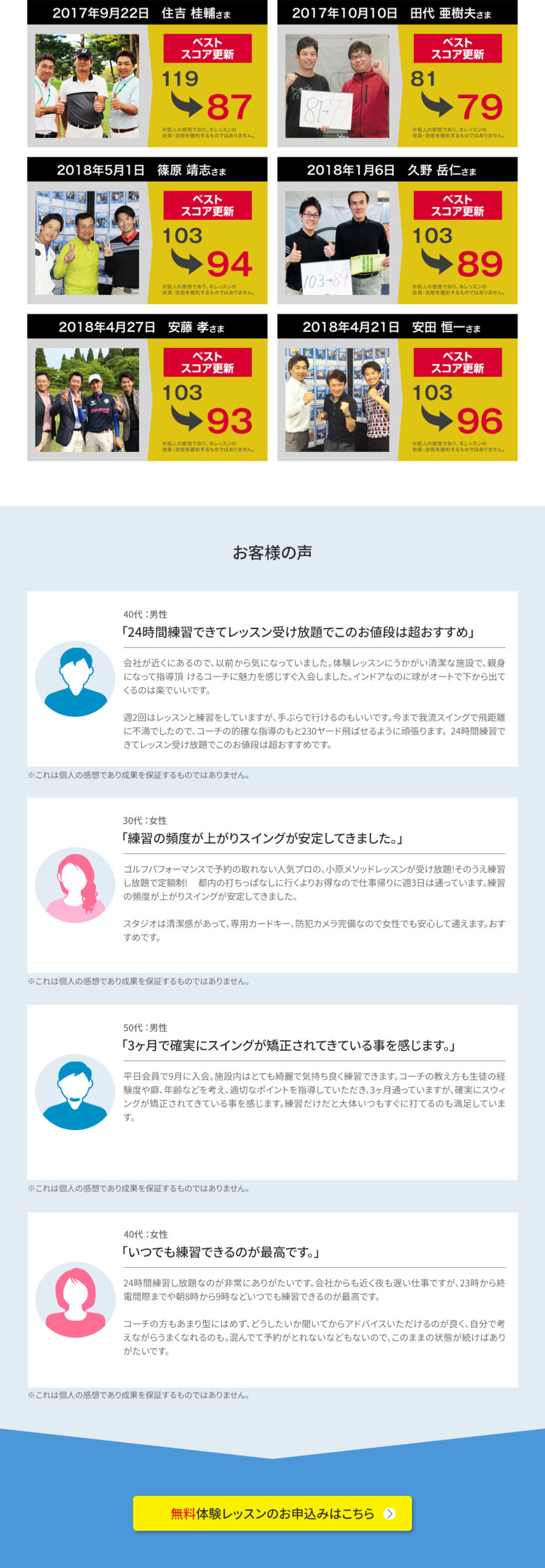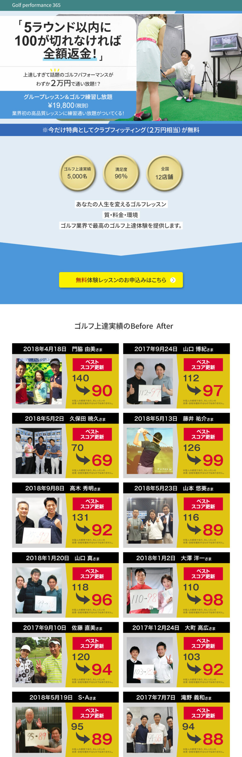 「全額返金保証」「5ラウンド以内」「スコア改善」など
