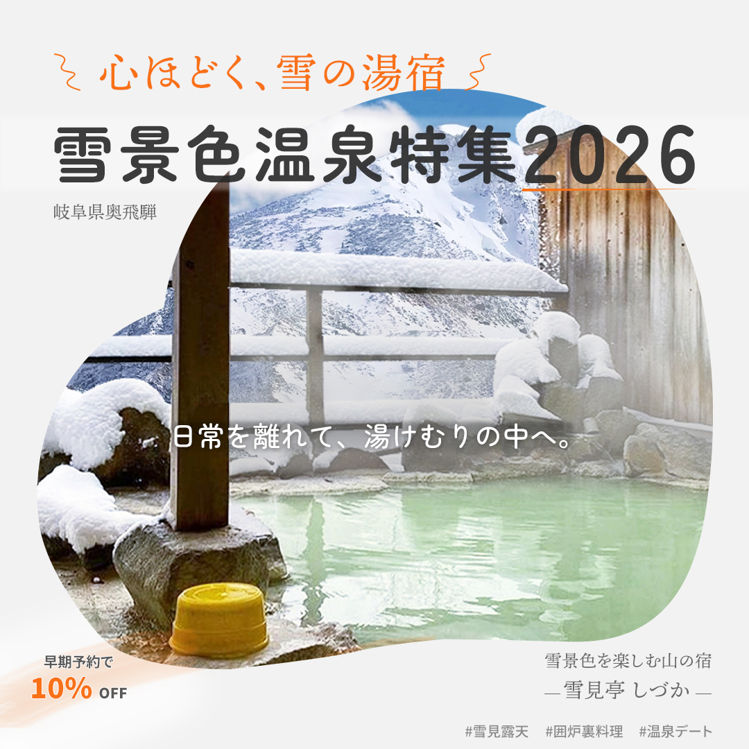 コピーは「雪景色温泉特集2026」をメインに配置し、シーズン感と特集感を強調。